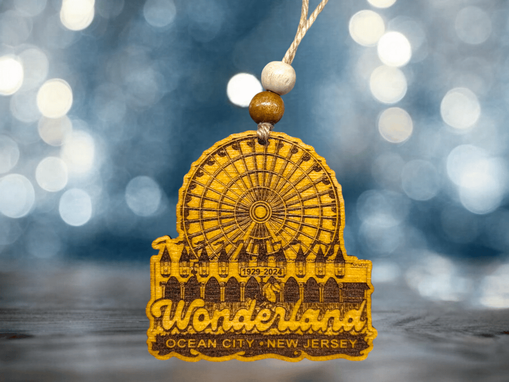 Celebrate the legacy of Wonderland Pier with this beautifully crafted ornament, featuring the iconic Ferris wheel that has graced the Ocean City skyline for 90+ years. Perfect for commemorating a beloved landmark, this limited-edition piece captures the nostalgia and joy of countless summer memories at the shore. A timeless keepsake for anyone who holds Ocean City close to their heart.