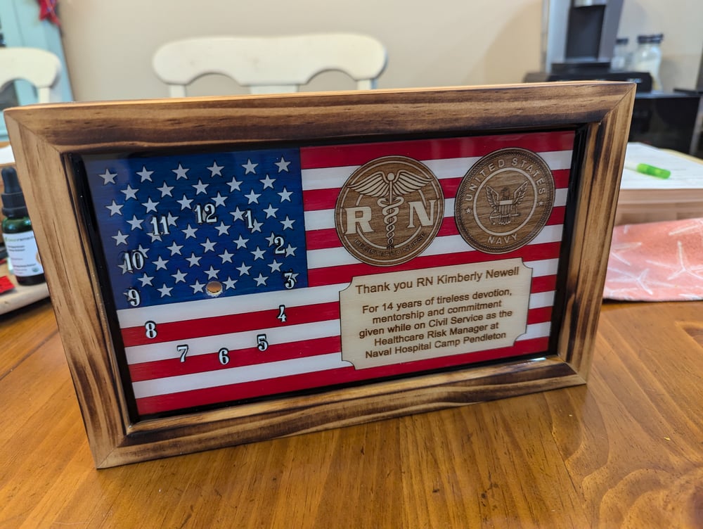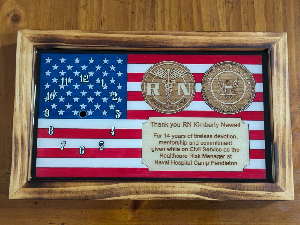 Our handmade hanging wall clock makes a beautiful addition to a home office, man-cave, she-shed or bedroom for the Nurse in your life!
