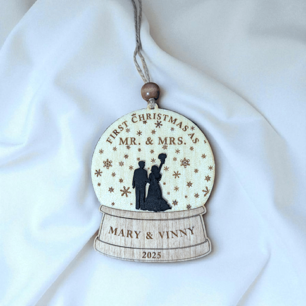 First Christmas as Mr. & Mrs. Wooden Snow Globe - Custom, Personalized Gift for Newlyweds