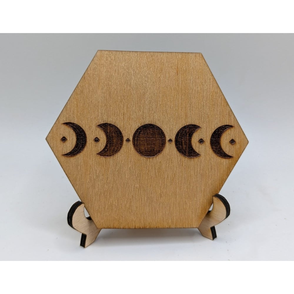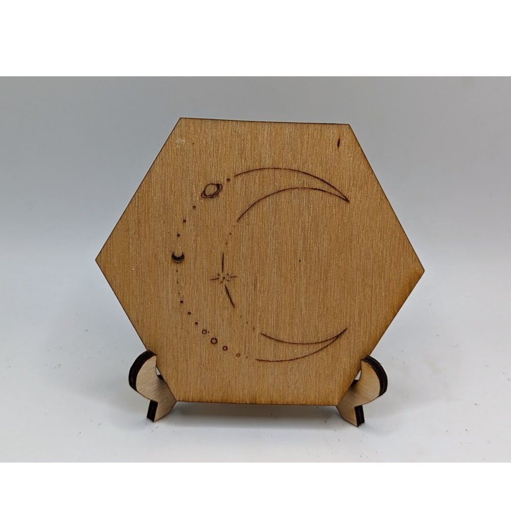 Hexagon Shaped Wooden Moon and Celestial Coasters. Perfect for housewarming gift, birthdays, holiday gift giving or just because!