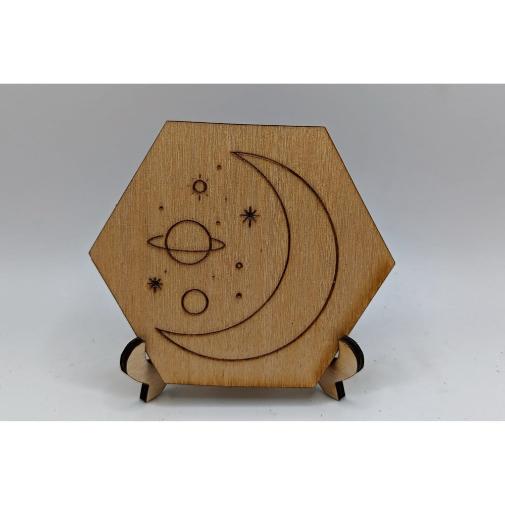 Handmade Hexagon Moon Coasters, Space Coasters, Wedding Gift, Housewarming Gift, Wooden