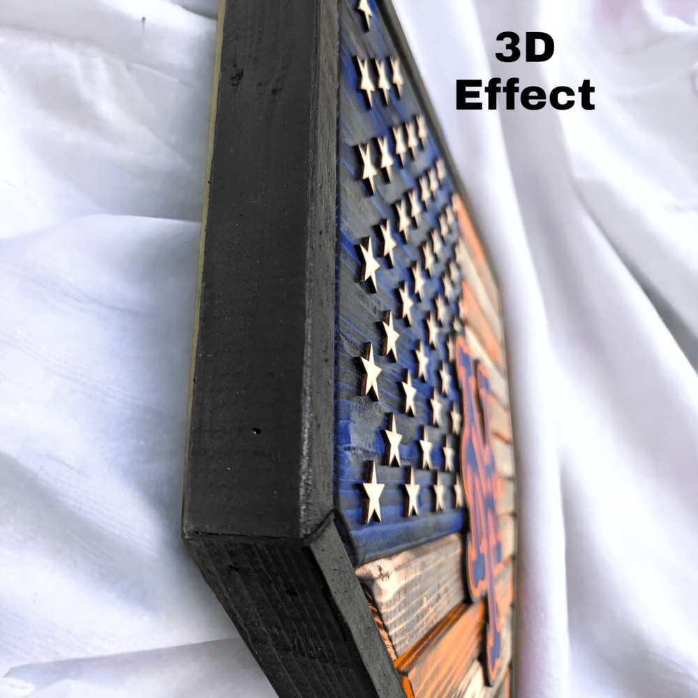 Crafted from high-quality wood and stained with vibrant Mets colors orange, white, and blue, this flag is sure to catch the eye of any sports fan or patriotic decor enthusiast. The laser cut stars and NYM logo are raised from the flag, giving a slight 3D effect. The meticulous attention to detail make this piece a true work of art that will last for years to come.