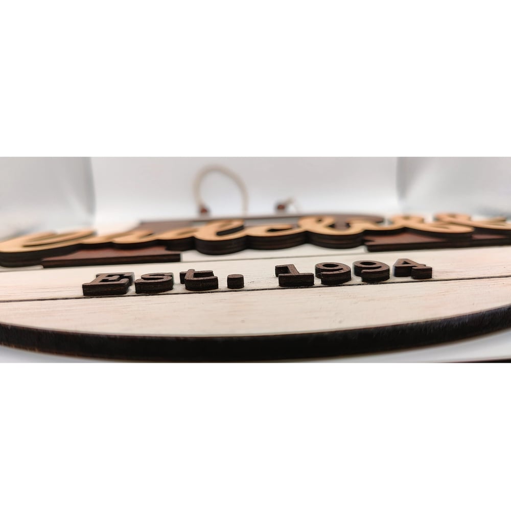 This personalized laser cut door sign is the perfect way to welcome guests to your home with style! Handmade with care, this unique sign features your family's monogram and last name, along with the established date, all beautifully crafted from high-quality materials.