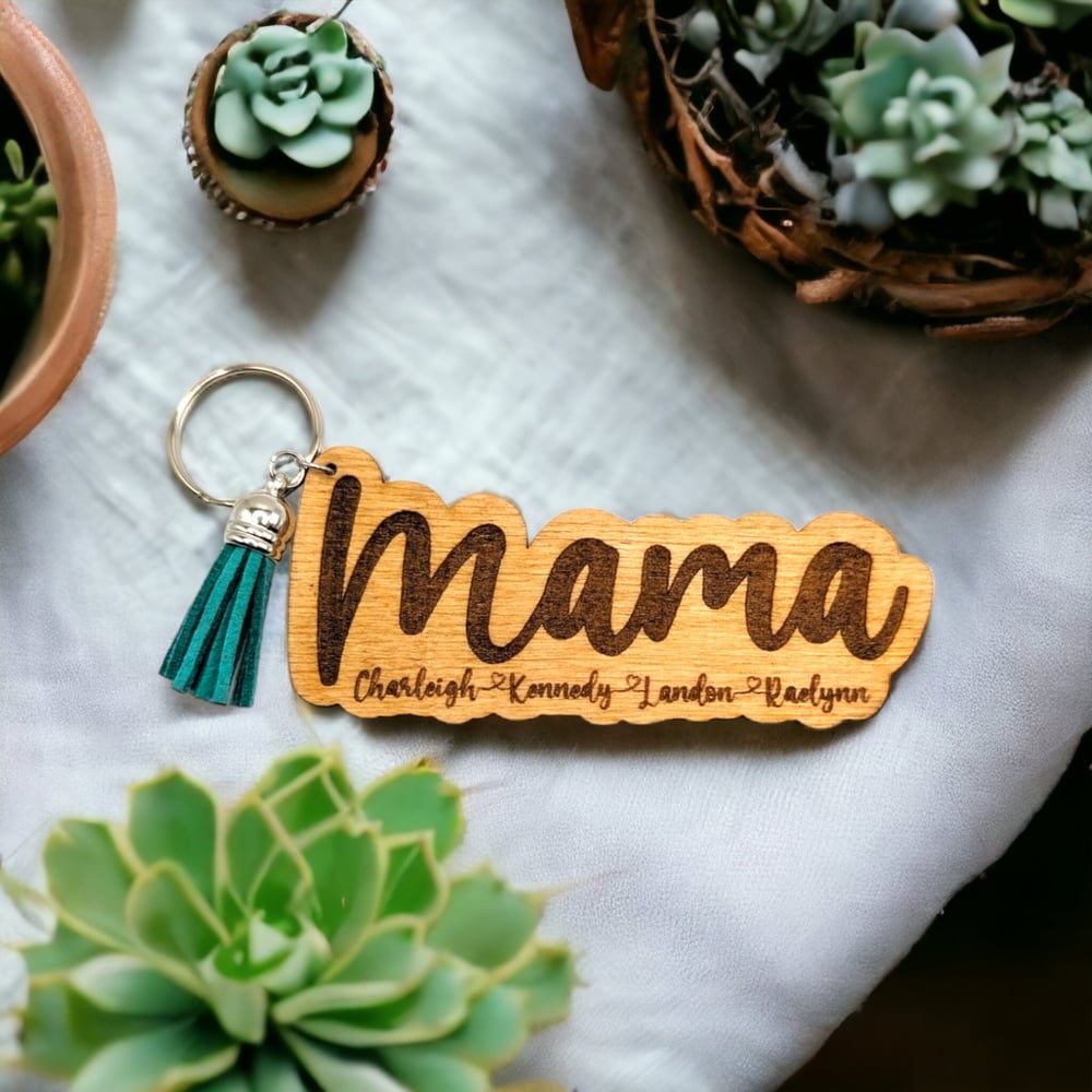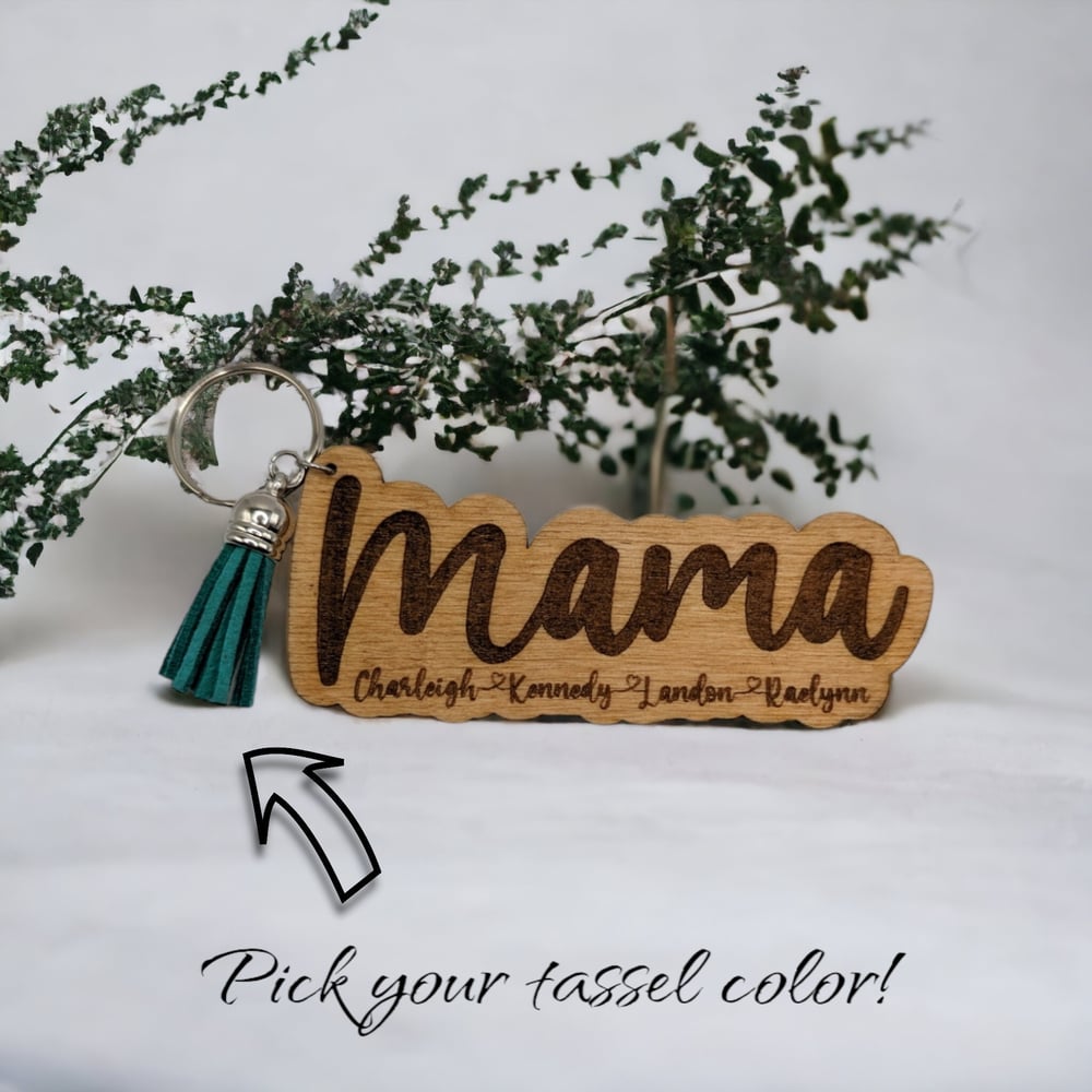 Personalized Mama Keychain with Tassel - Customizable with Kids' Names