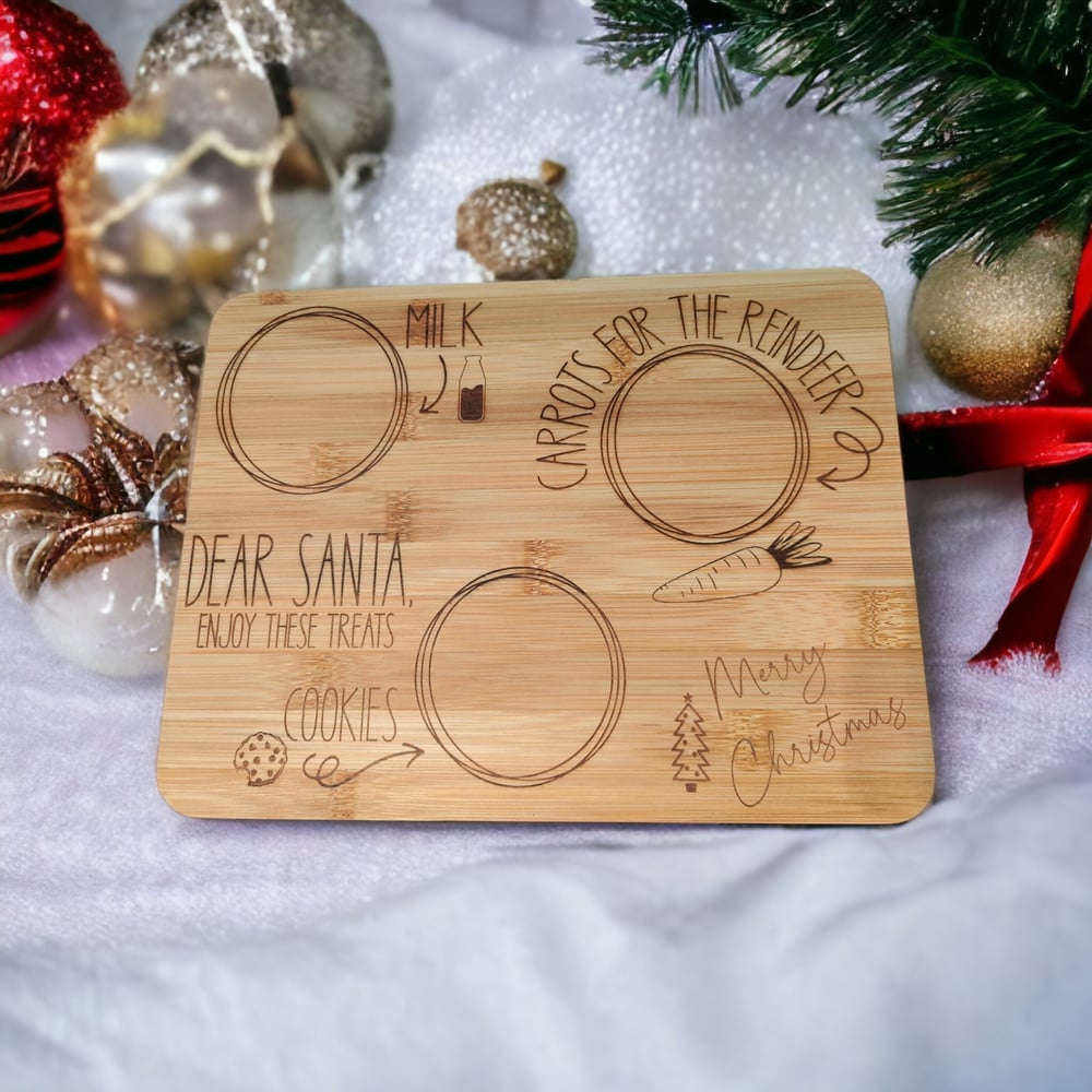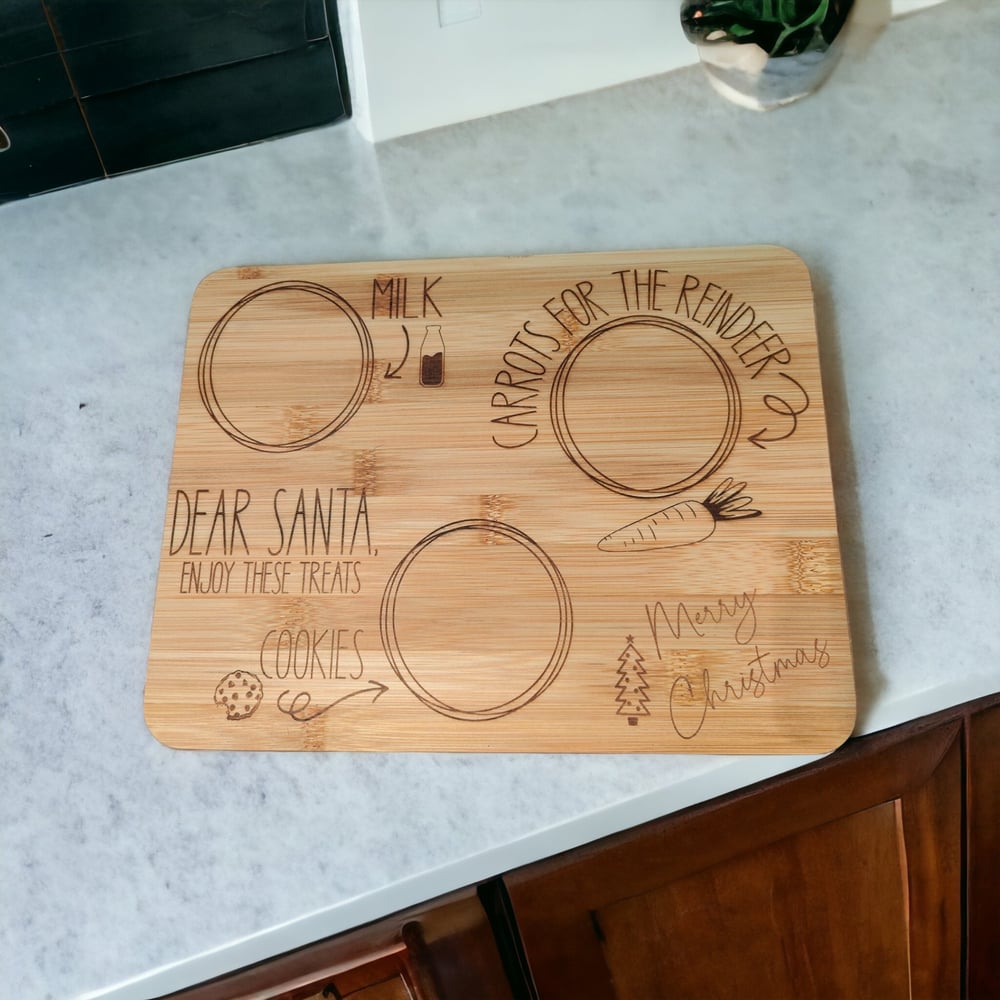 What better way to leave Santa (and his reindeer) his special milk and cookie treats than this adorable bamboo treat board?! This natural bamboo board is the perfect addition to your counter or coffee table this Christmas Eve!