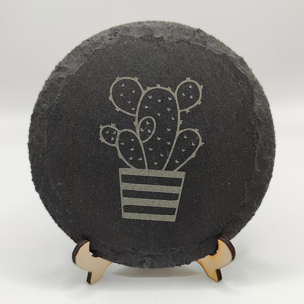 Set of 4 Laser Engraved Cactus Slate Coaster Set, Custom Gifts, Gifts for Home