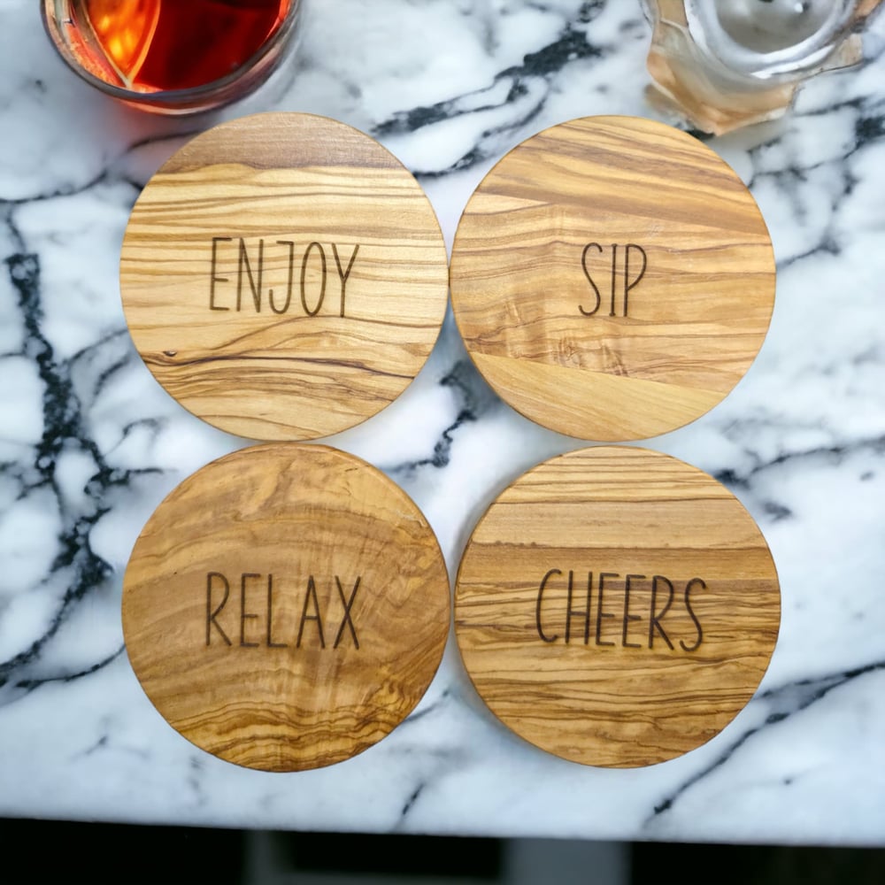 Sweet and Salty Wooden Coaster Set (Double Sided)