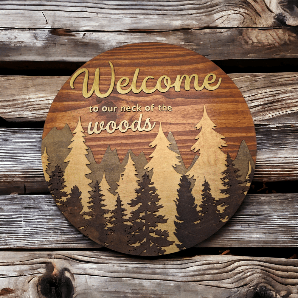 Emblazoned with the heartfelt phrase "Welcome to Our Neck of the Woods," this sign embodies the spirit of hospitality and makes a distinctive statement at the entrance of your home. Whether you're greeting guests in your living room, entryway, or even on the porch, this sign serves as a warm invitation to all who enter.