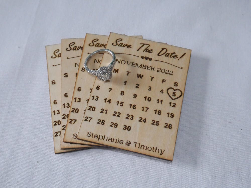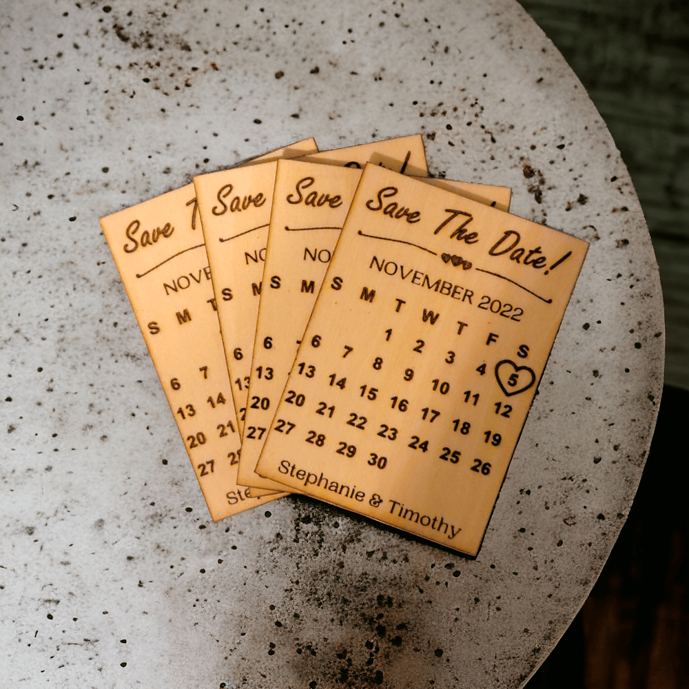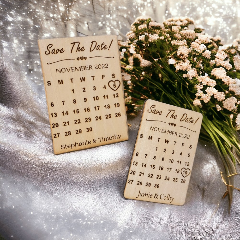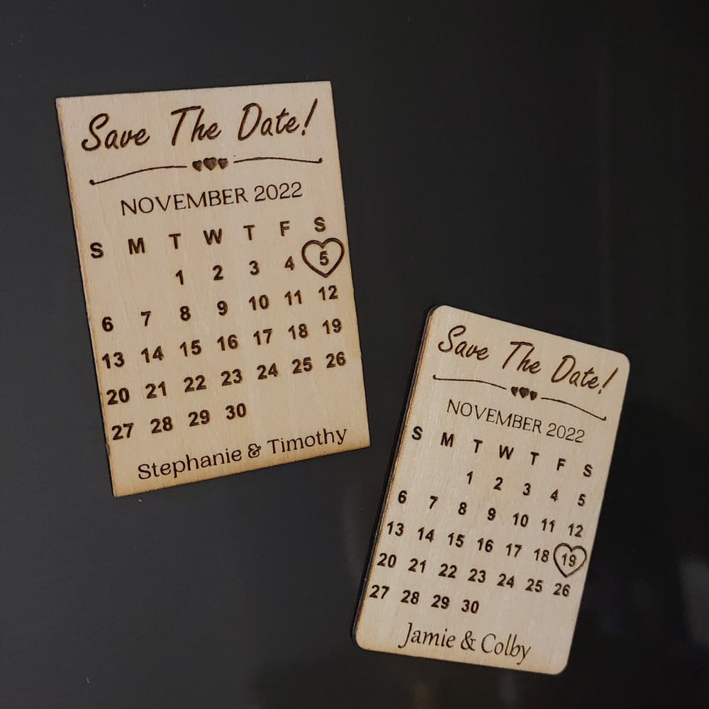 Beautiful, Handmade Wooden Save The Date Calendar Magnets - a unique way to invite your friends and family to share your special day with you!