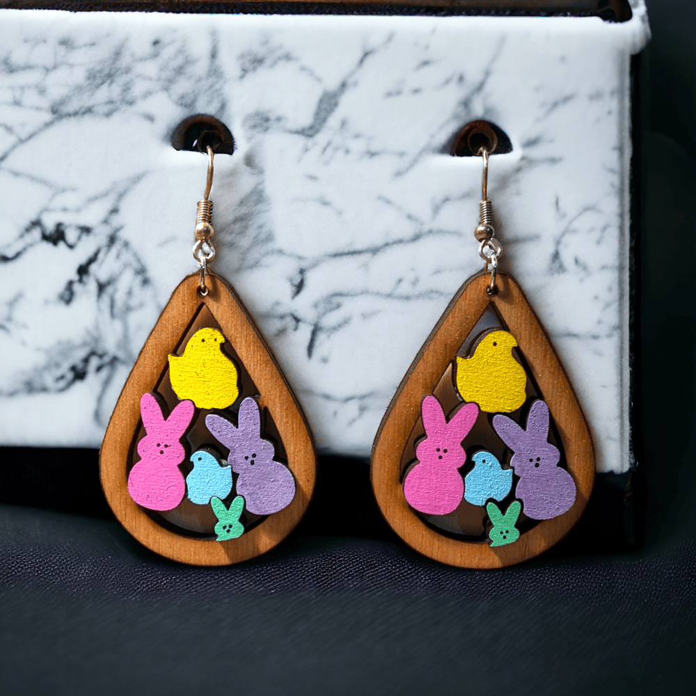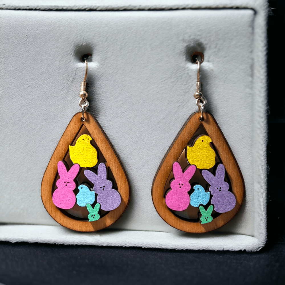 Whether you're looking to add a whimsical touch to your everyday ensemble or seeking a heartfelt gift for someone special, these Tear Drop Wooden Dangle Earrings with Peeps are the perfect choice.